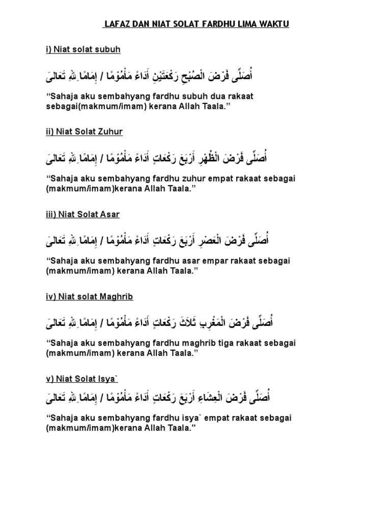Lafaz Dan Niat Solat Fardhu Lima Waktu Pdf